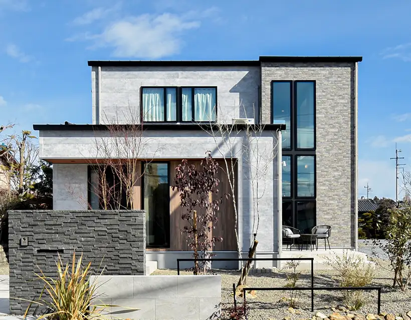 木目や石目がアクセントになったスタイリッシュな外観に、室内はホテルライクな高級感溢れる仕様です。