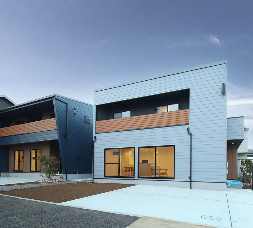 鴻巣市松原に誕生した、全く異なる魅力を持つ2棟のモデルハウス。どちらもスタイリッシュなガルバリウム鋼板を採用した注文住宅クオリティの外観ながら、一歩中へ入れば、それぞれの家族のカタチに合わせた「暮らしの提案」が広がっています。