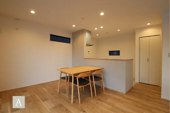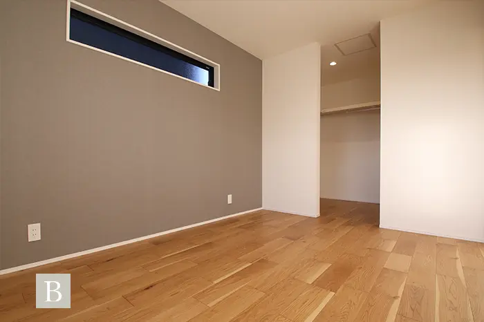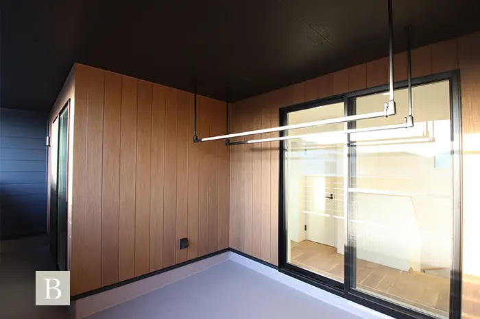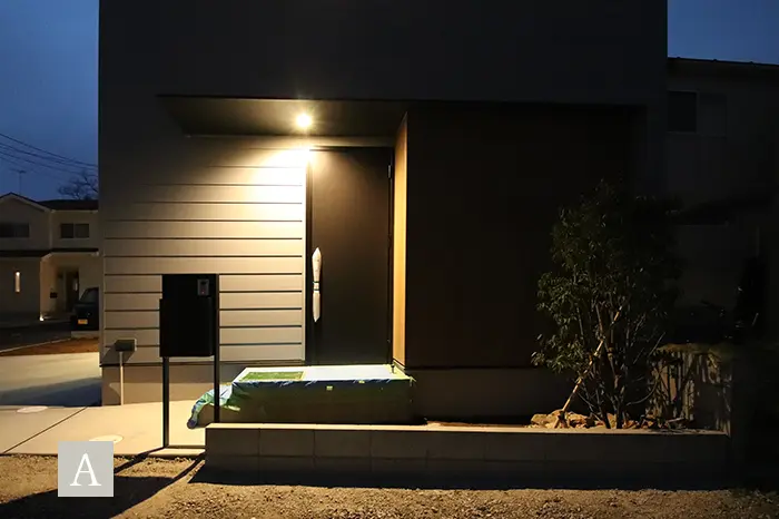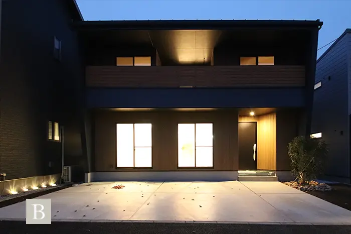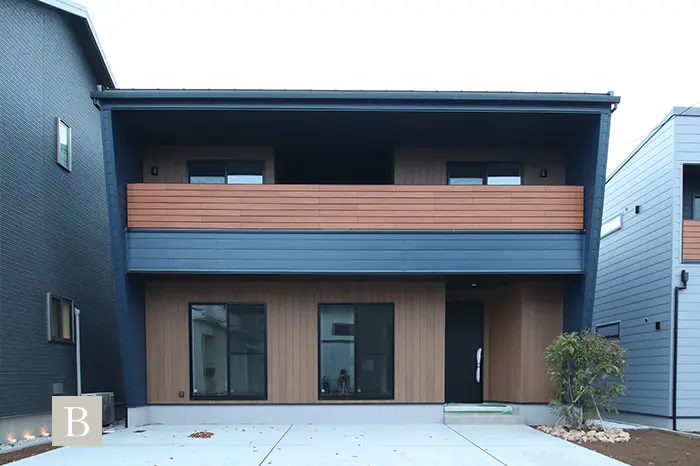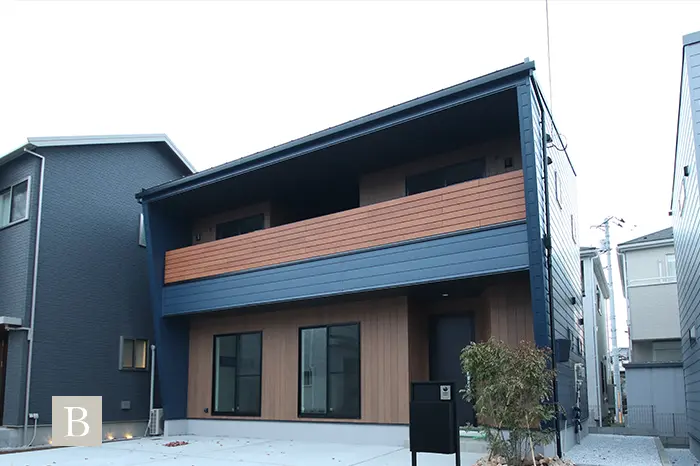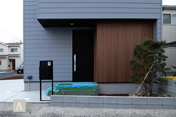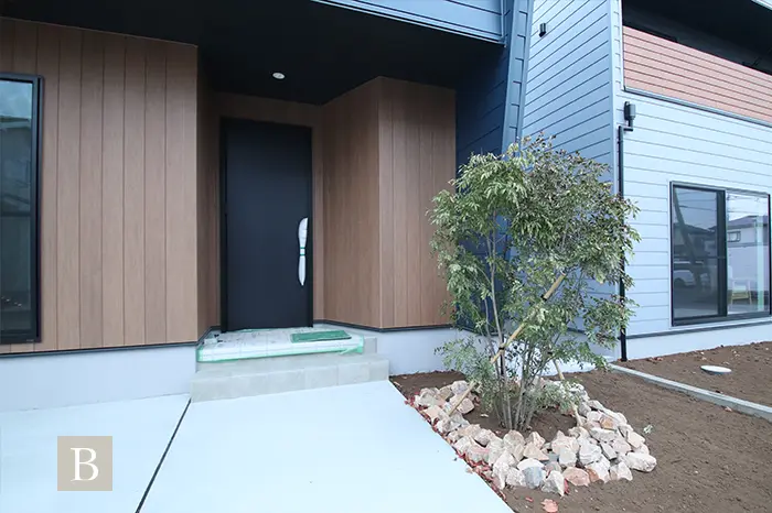 スタイリッシュでモダンな外観を演出するガルバリウム鋼板は、建売住宅ではコストがかかるため、あまり扱われない建材で注文住宅の無垢スタイルだからこそ叶う仕様です。
