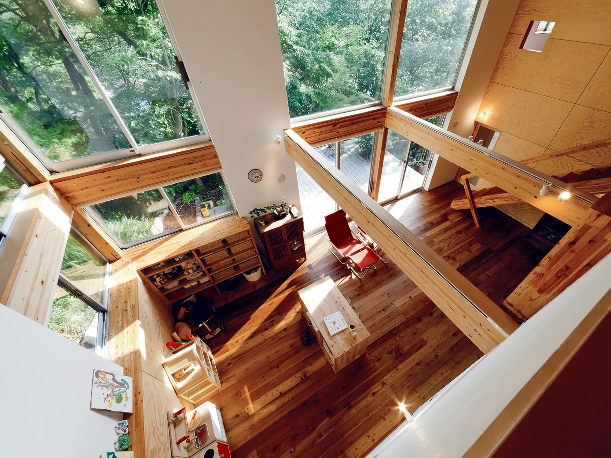限られた敷地を活かしたプランや、大きな吹抜けのある開放的な空間、光や風を取り込む大きな窓、暮らしを楽しむ工夫に満ちた空間構成など。こうした希望を安全に実現するためには、高い構造性能が欠かせません。 大規模木造建築の技術から生まれた SE構法 なら、優れた構造性能で理想のプランを安心して形にすることができます。