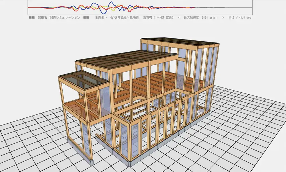実際の地震波を使い、建物が倒壊しないことを検証。科学的根拠に基づく設計です。